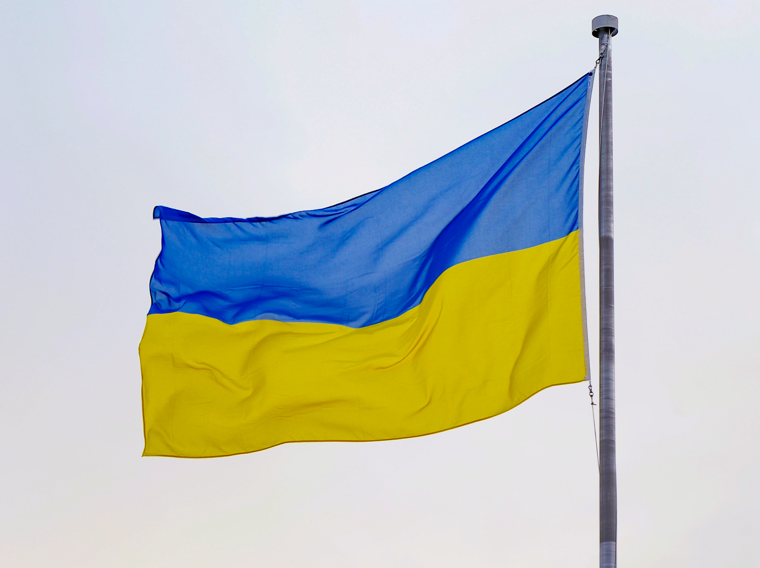 Strax efter 10 idag, måndag, hissade lagtinget Ukrainas flagga vid Non-Violence statyn invid Självstyrelsegården.