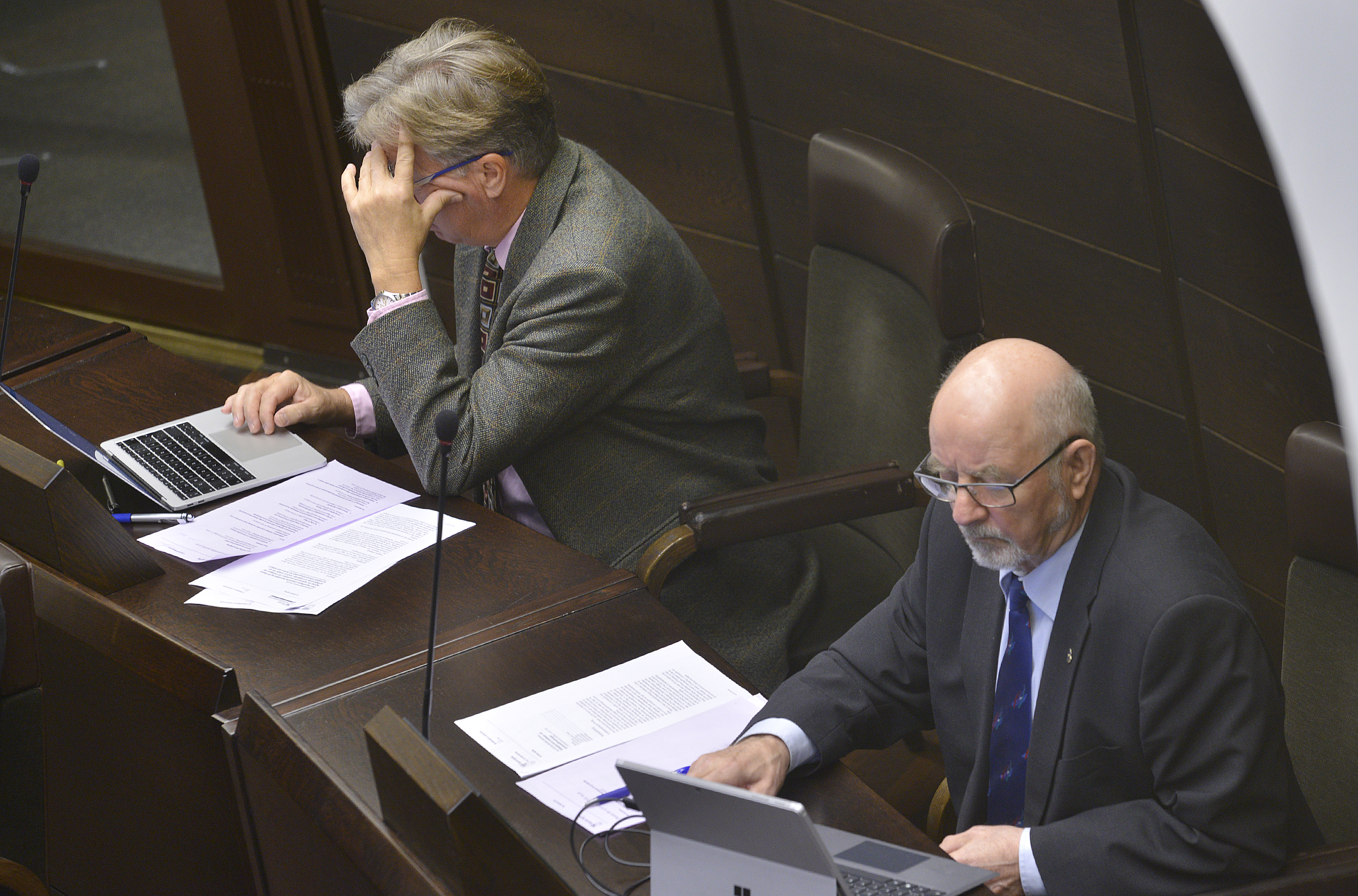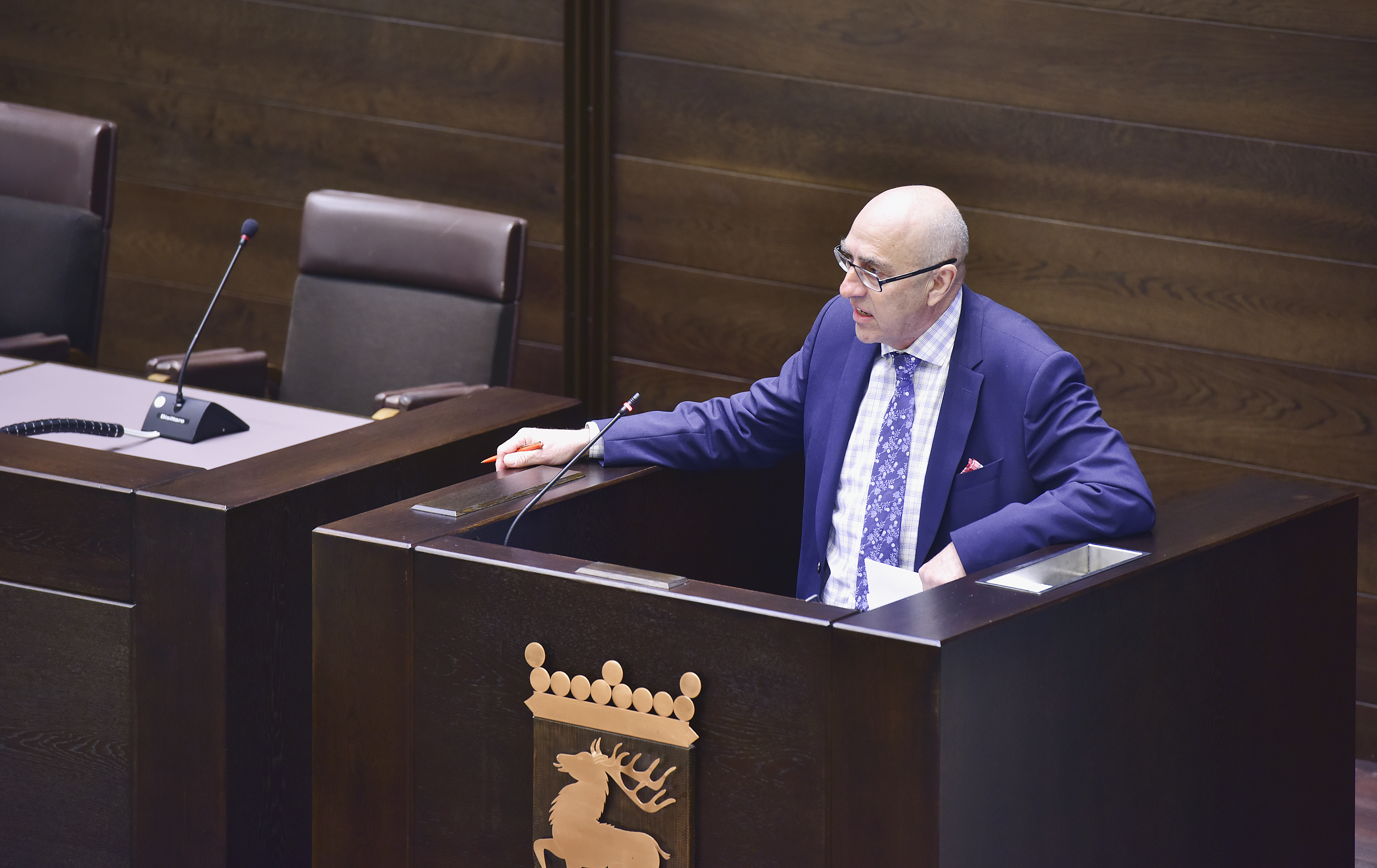 Harry Jansson (C) lyfte ett klämförslag när debatten kring medborgarinitiativet mot kortrutten debatterades vidare i lagtinget.
