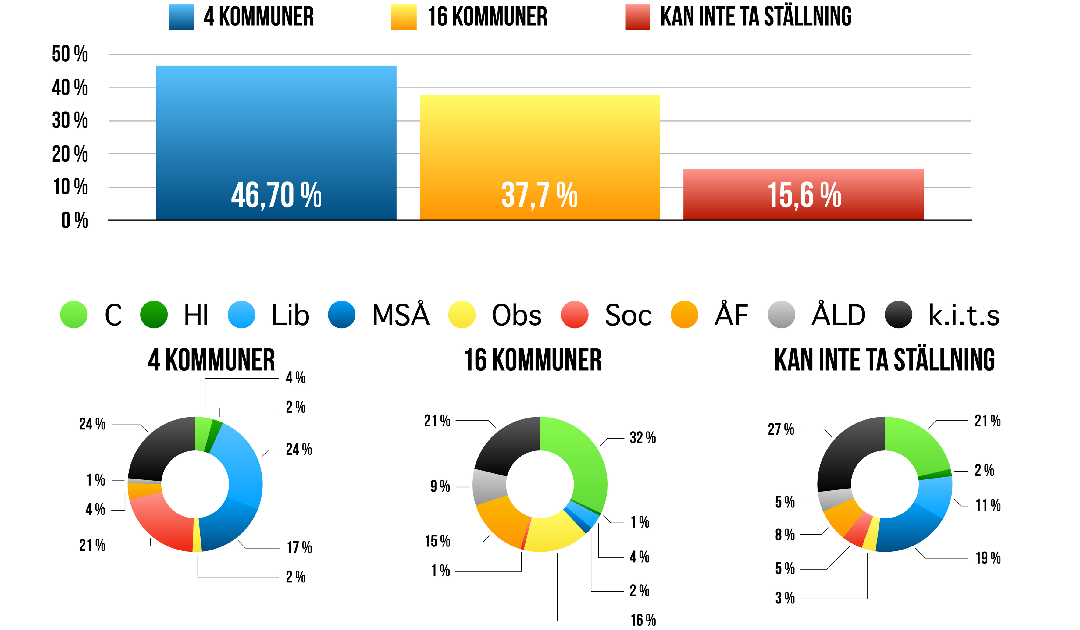 49,9 procent av gallupdeltagarna vill att Åland ska fyra kommuner.