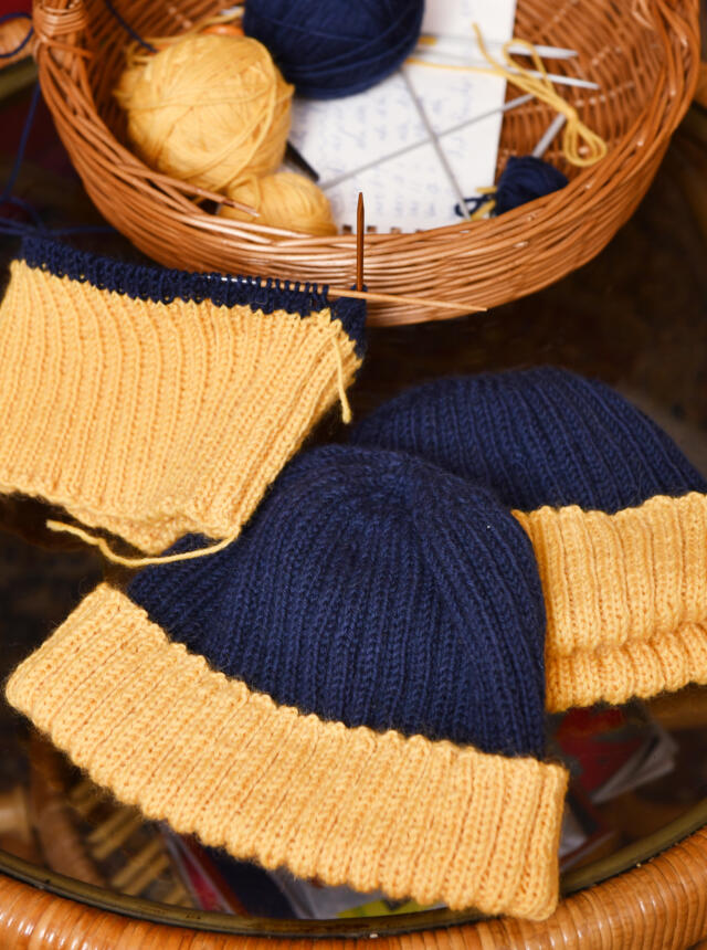 Nu kan du visa dig i Ukrainas färger. Denna mössa som du enkelt stickar själv i gult och blått är en protest mot kriget.
