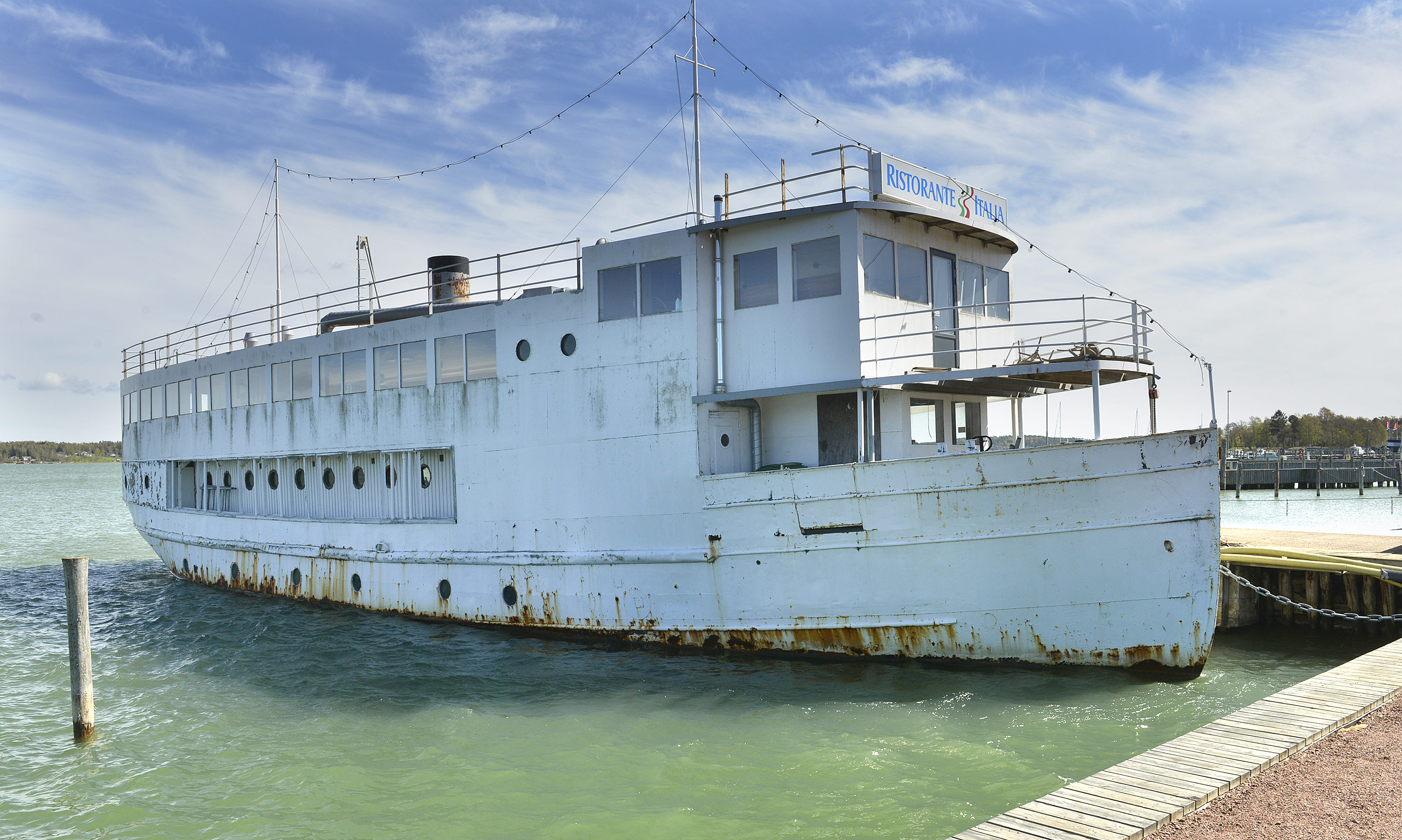 Hyresavtalet är uppsagt men restaurangbåten Maneechai/Ristorante Italia ligger fortfarande kvar vid kajen i Östra hamnen.