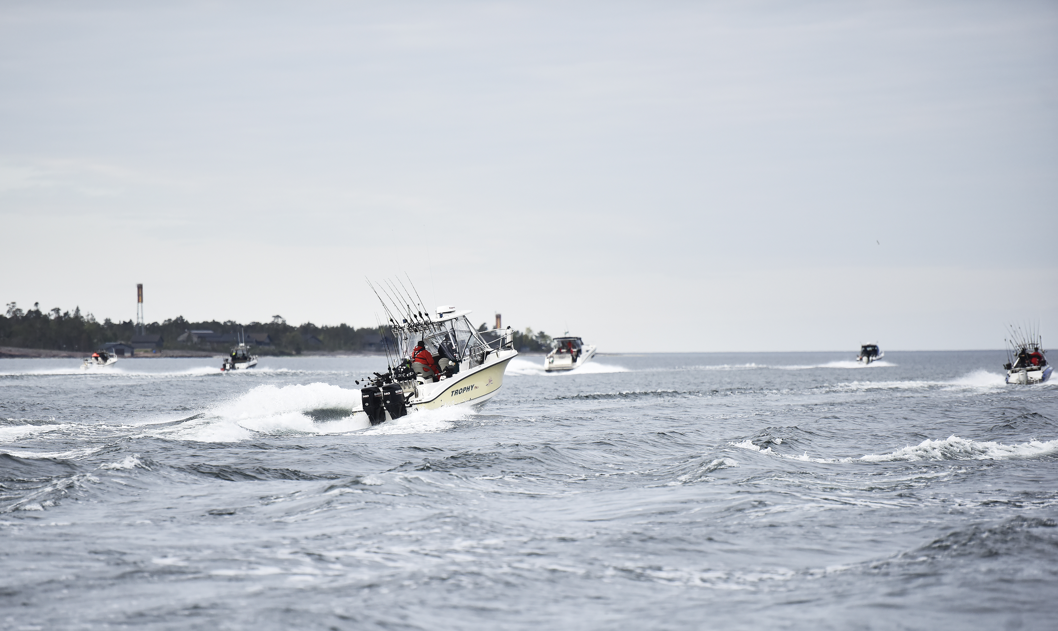 35 trollingbåtar låg beredda i Käringsund tidigt på torsdagsmorgonen. Klockan åtta gick startskottet för den 27:e trollingträffen.
