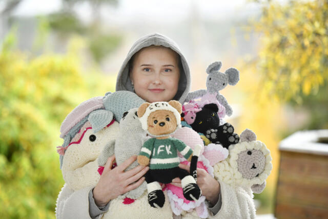 15-åriga Smilla Rundberg lärde sig virka med hjälp av en Youtube-video i femte klass.