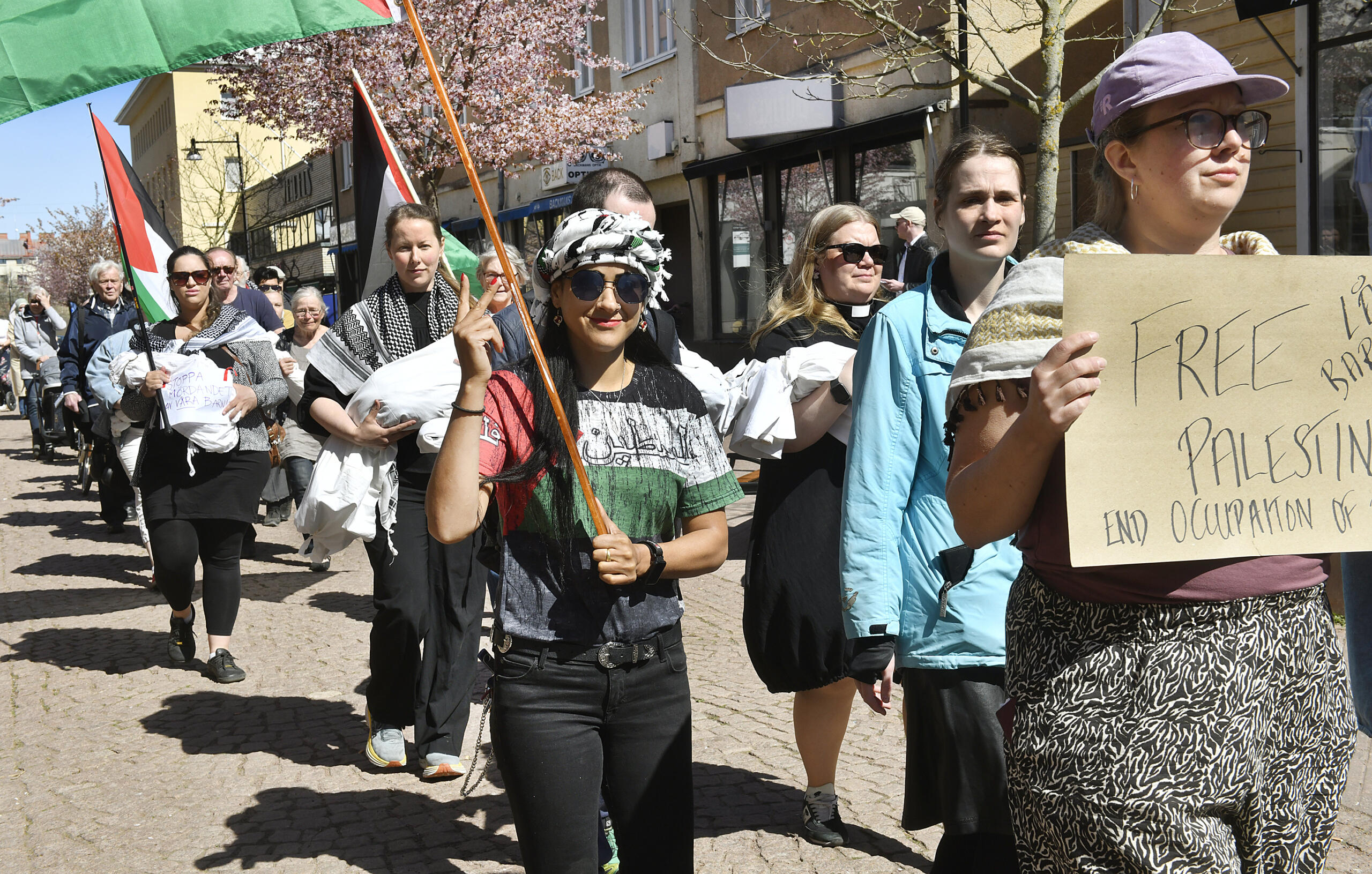 40-tal demonstranter tågade tyst genom Mariehamn